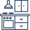 Herd, Backofen, Dunstabzug, Arbeitsflächen. Hygienisch sauber ohne Rückstände.